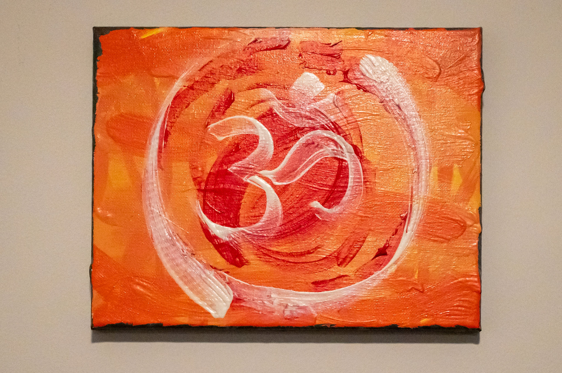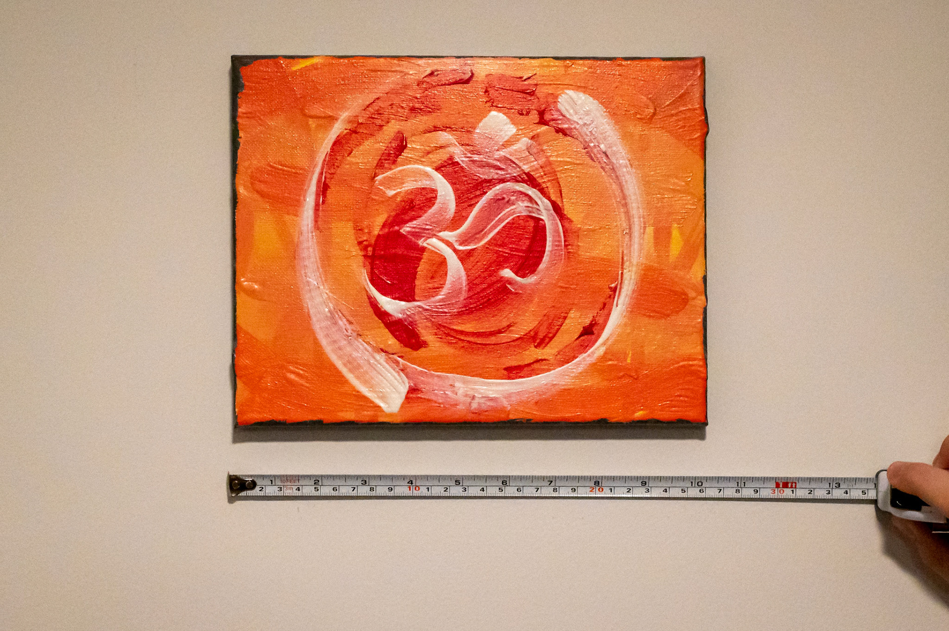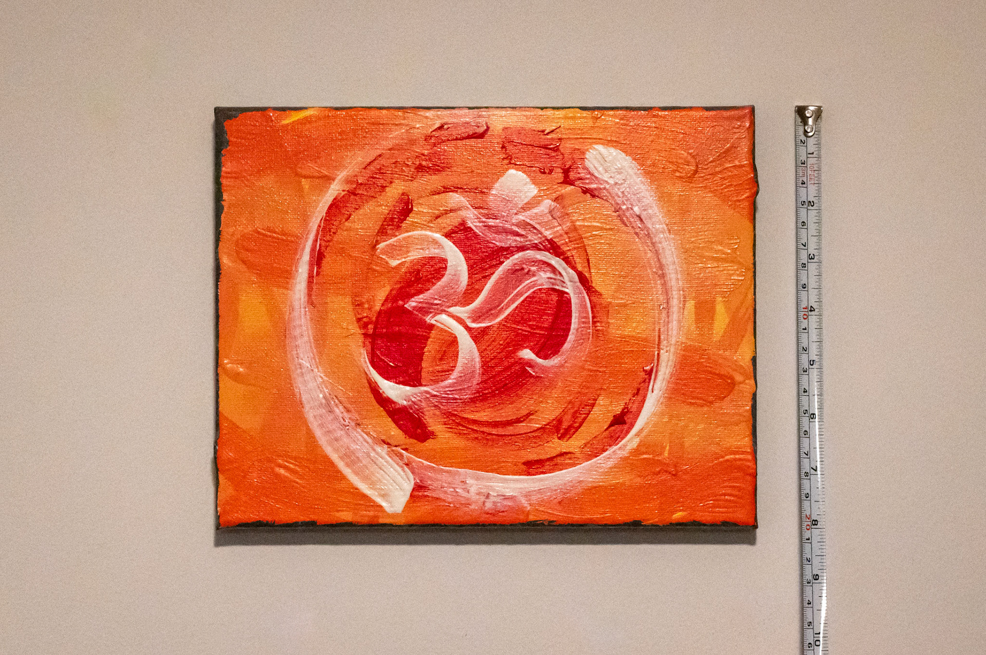 2022 Om (Aum), created with thick gorgeous textured paint brushed on canvas. The paint has notable depth in multiple ways, utilizing a partially translucent medium with texture and stringing additives. In this wall art piece, I've used deep rich reds, vivid oranges, striking yellows, and sharp crisp whites. These strong colors make this painting stand out in a way that can't be ignored. The strokes are vibrant and energetic, sometimes seeming chaotic, and come together in a way that makes a wonderful sense. These pieces are created one layer at a time on multiple canvases. For example, the same color/brush/technique combination will be used on ten different canvasses before moving on to the next color/brush/technique. In this way, I make multiples of the art, but each piece is truly unique. Please expect minor variations from piece to piece. However, almost the exact same strokes, colors, and patterns will be used. It will look like the pictures (especially if you tilt it into the light to catch the shadows across the texture like I do in these pictures). These Om (Aum) symbols and their backgrounds are painted on canvas stretched across a wooden frame. Depth: 5/8" Width: 10" Height: 8" If you have any questions or requests, PLEASE let me know! I'll be happy to see what I can do.